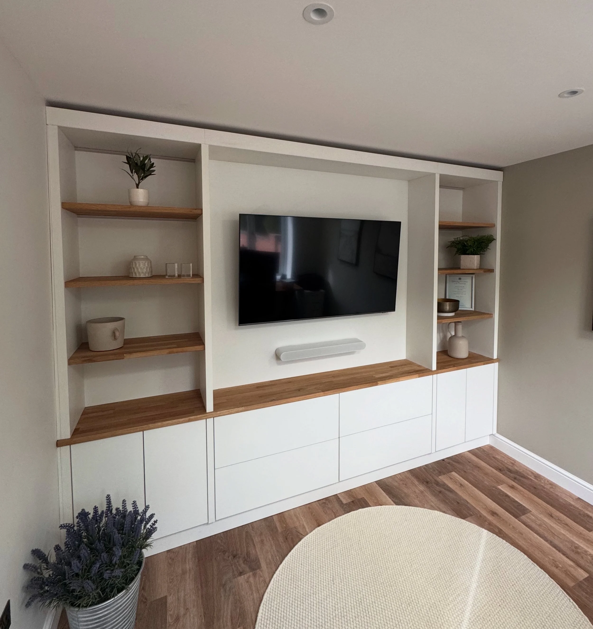 Turn your TV area into a stunning centrepiece with a bespoke media wall. Our designs combine sleek technology integration with hidden storage and custom lighting.